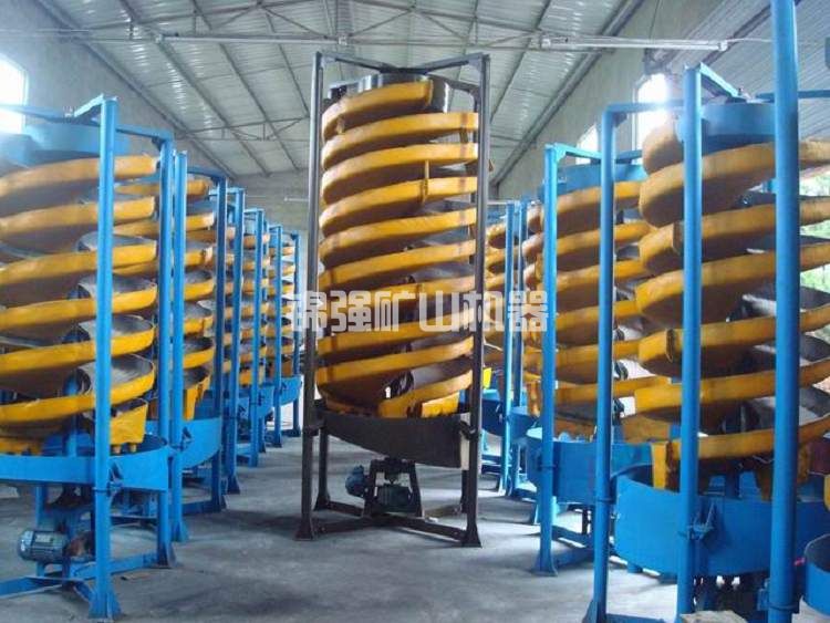 (2)旋轉(zhuǎn)螺旋溜槽比一般螺旋溜槽緩解了葉子槽表面的脫干狀況,更改了濃度值遍布,鈦精礦帶濃度值相仿狀況下,中礦帶的尾礦庫帶濃度值均值低5%之上,這有益于原材料疏松,有益于較緊促礦物質(zhì)收購 。